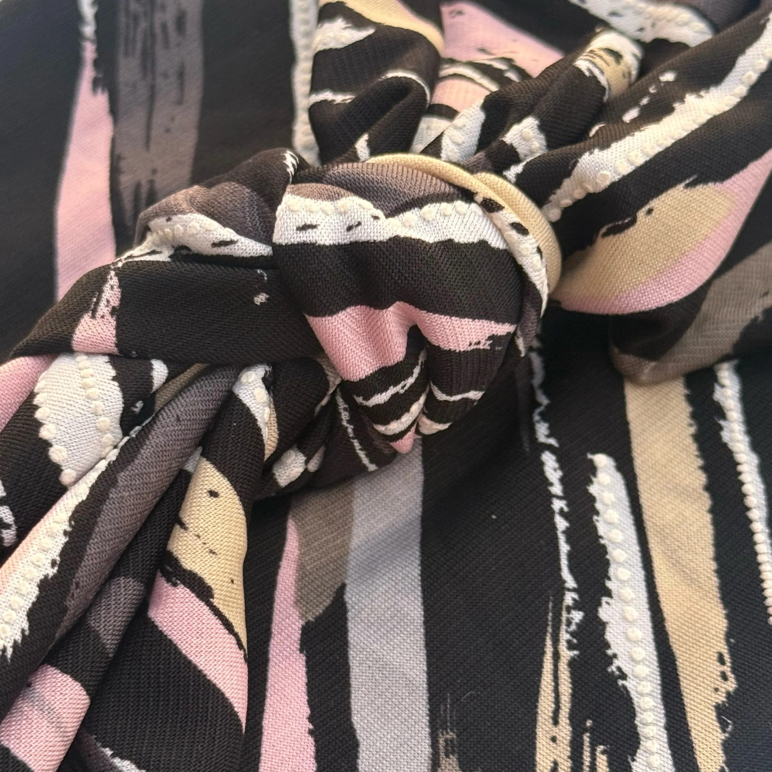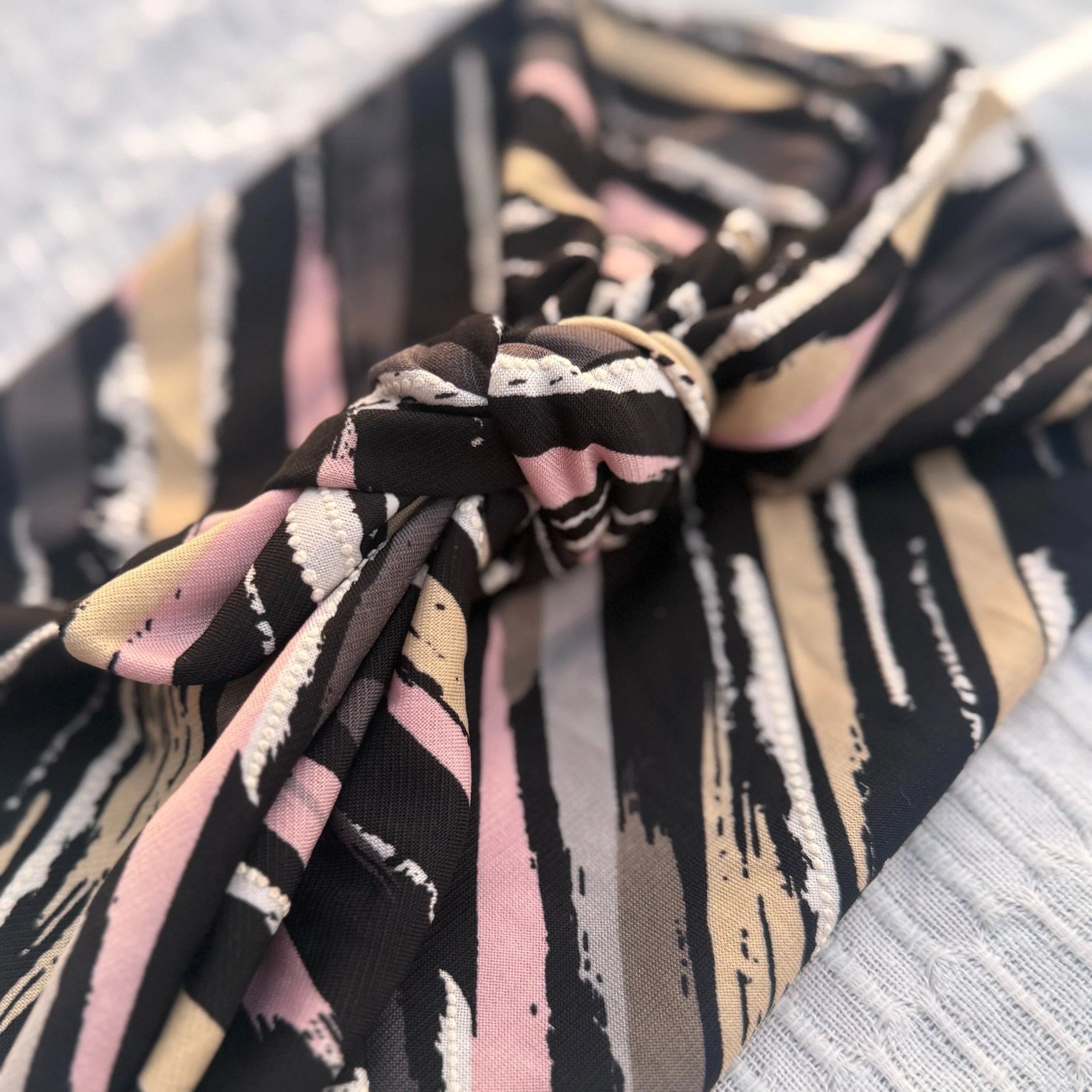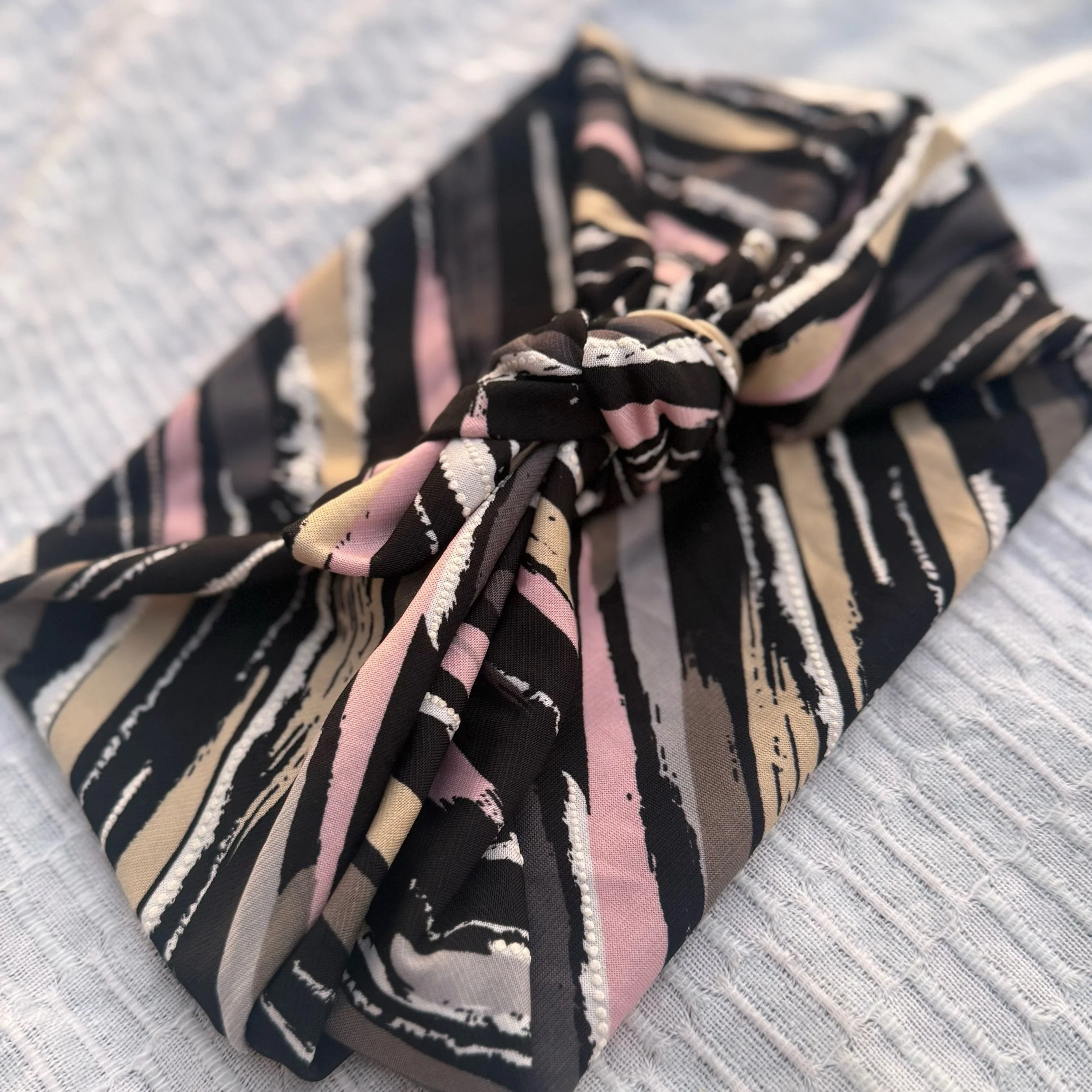 We hand cut and sew these headbands one at a time. I often use vintage and reclaimed knit fabrics. This truly makes them one of a kind. Once the fabric is gone, I cannot get it again.