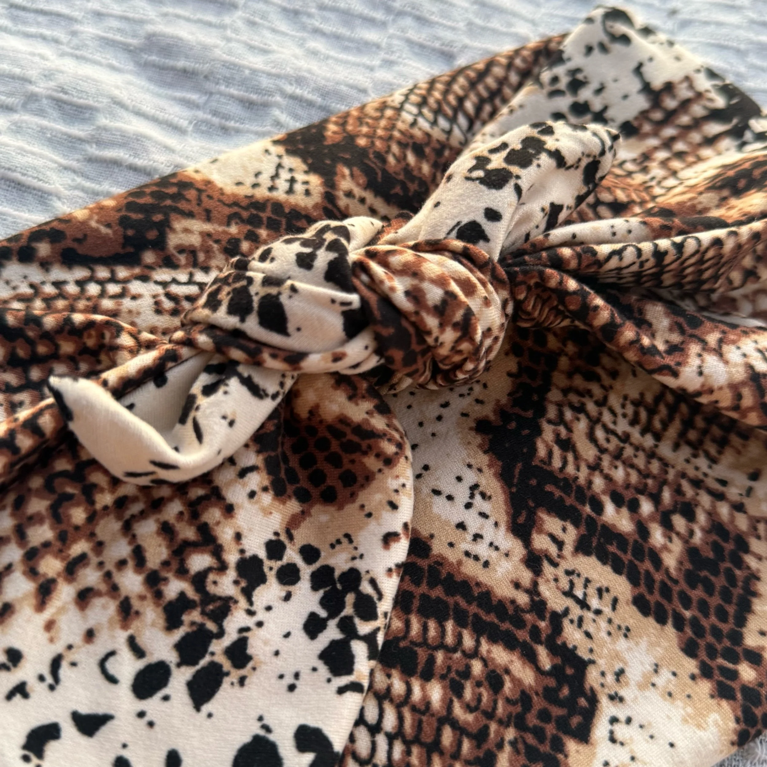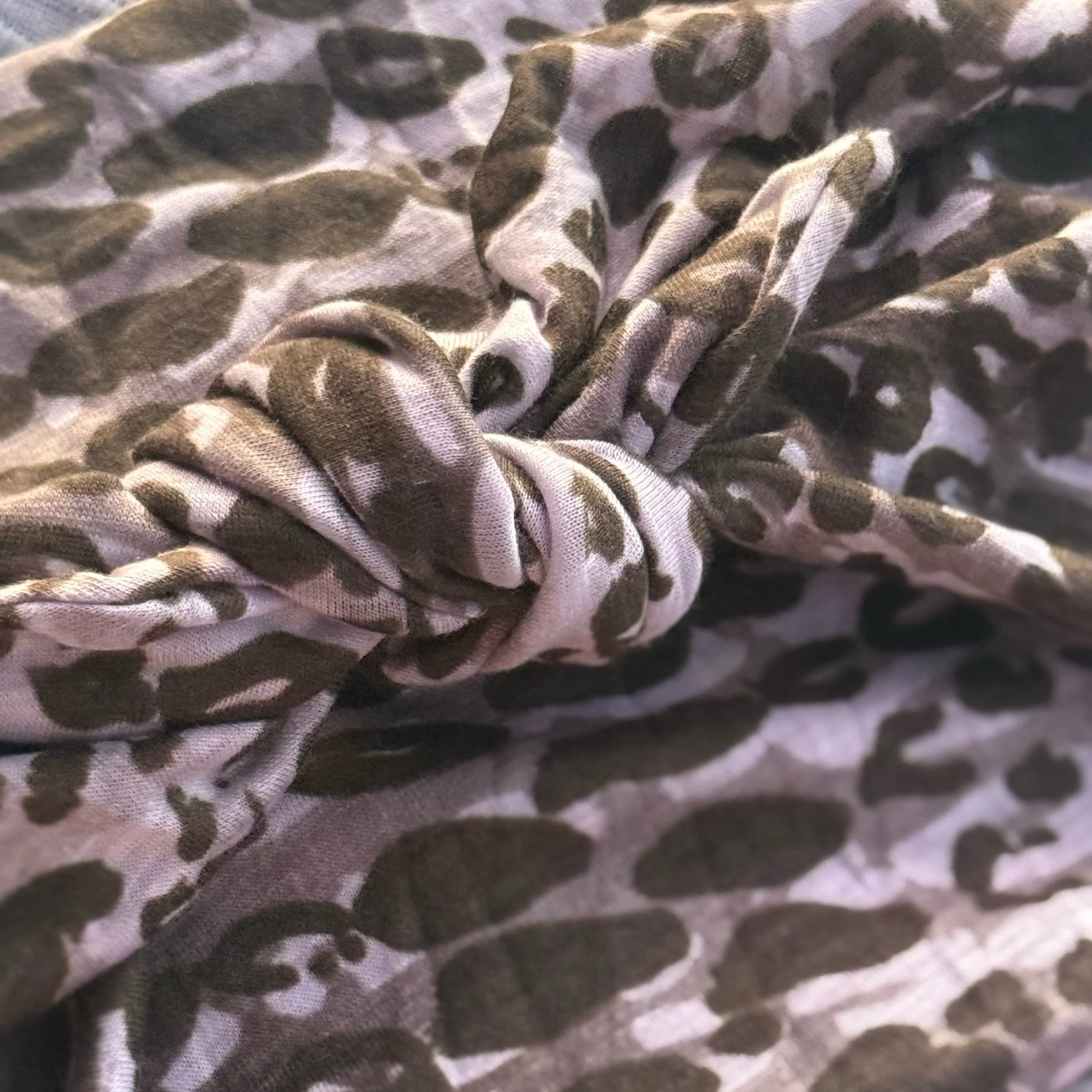 We hand cut and sew these headbands one at a time. I often use vintage and reclaimed knit fabrics. This truly makes them one of a kind. Once the fabric is gone, I cannot get it again.