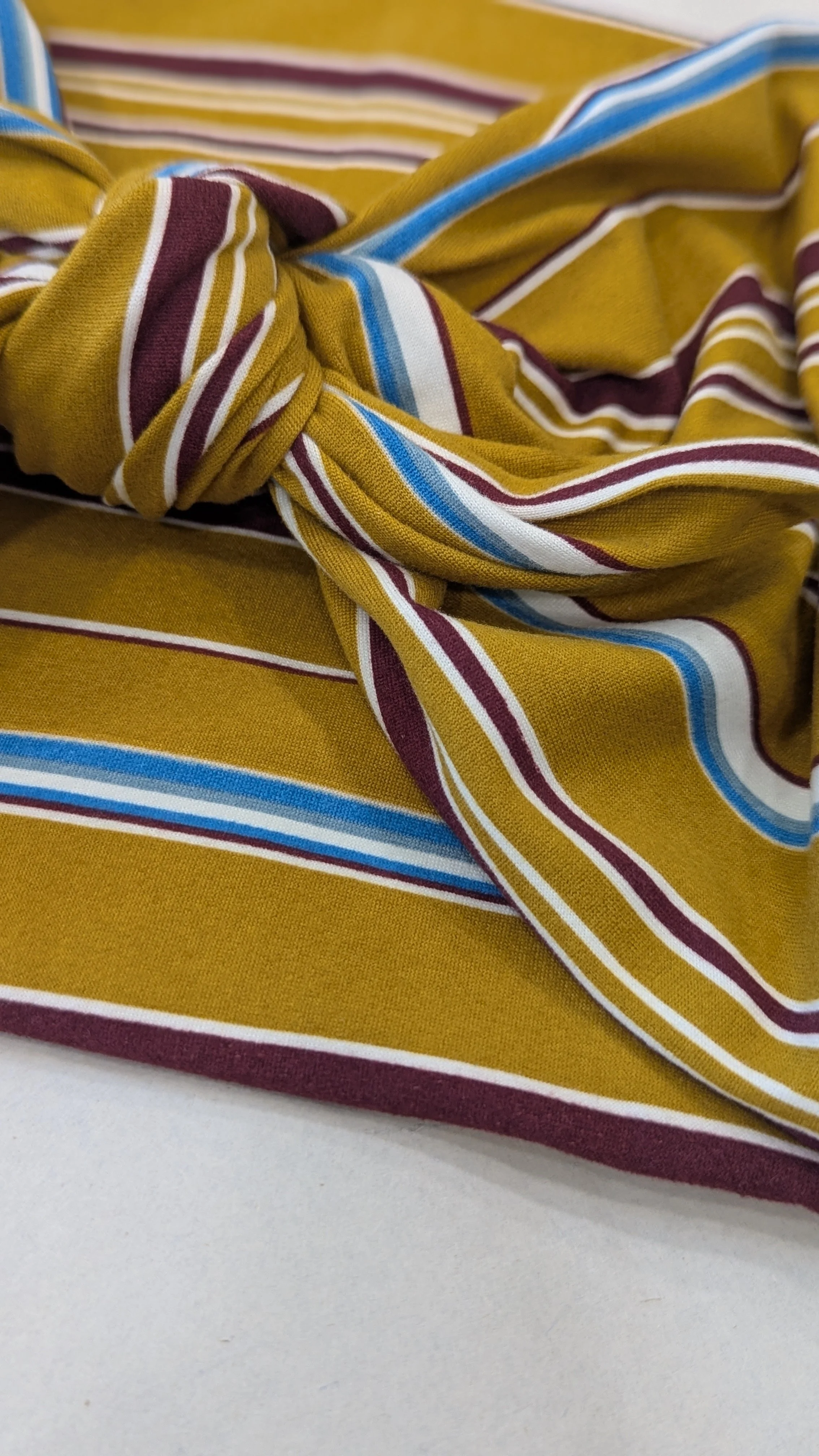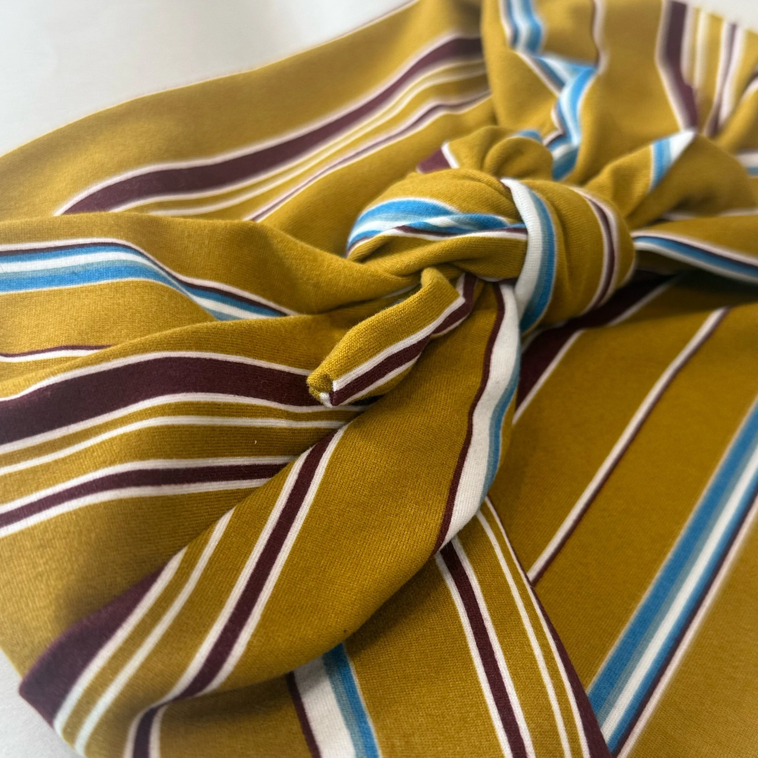 We hand cut and sew these headbands one at a time. I often use vintage and reclaimed knit fabrics. This truly makes them one of a kind. Once the fabric is gone, I cannot get it again. We are not mass producing them out of standard fabric. That means you get a truly unique look!