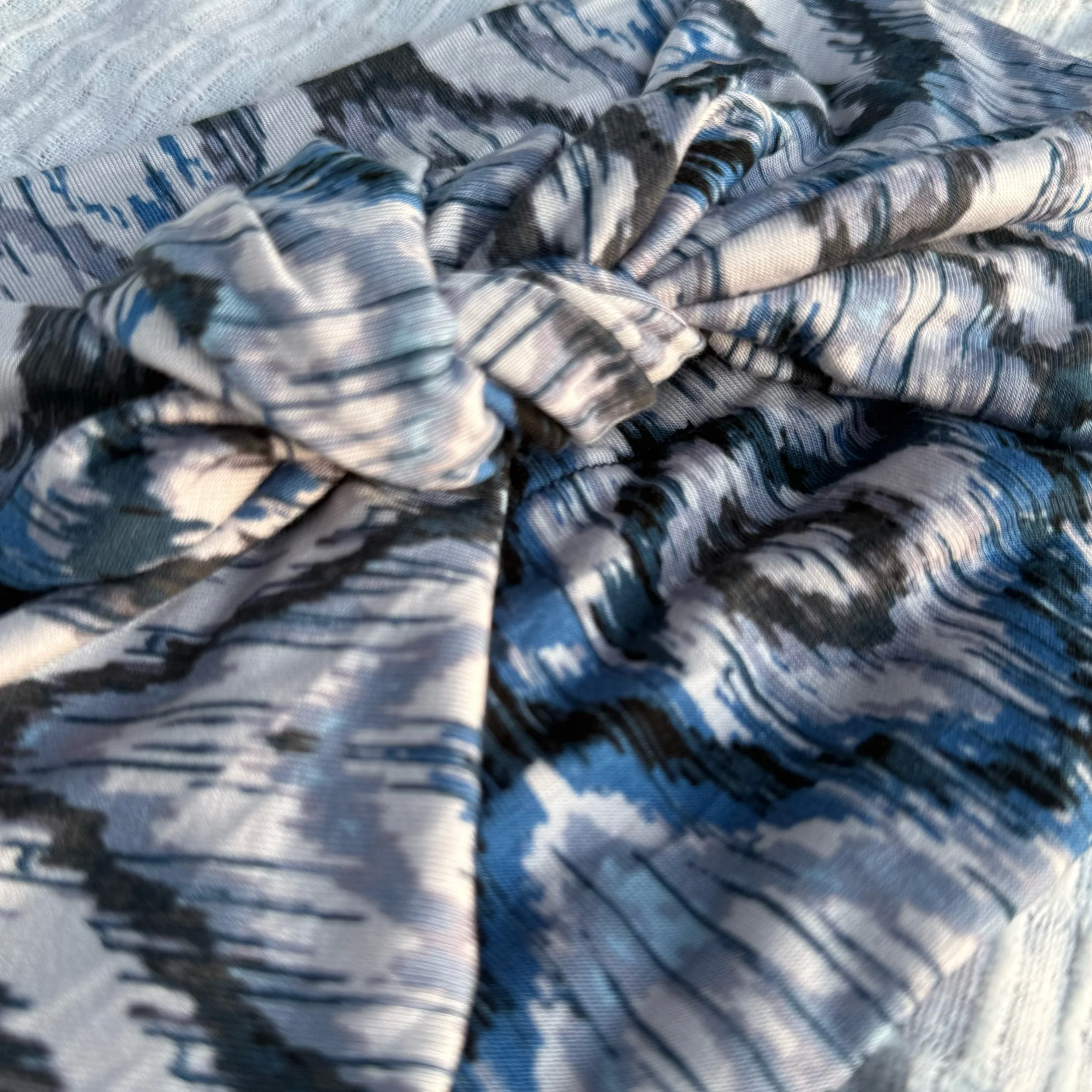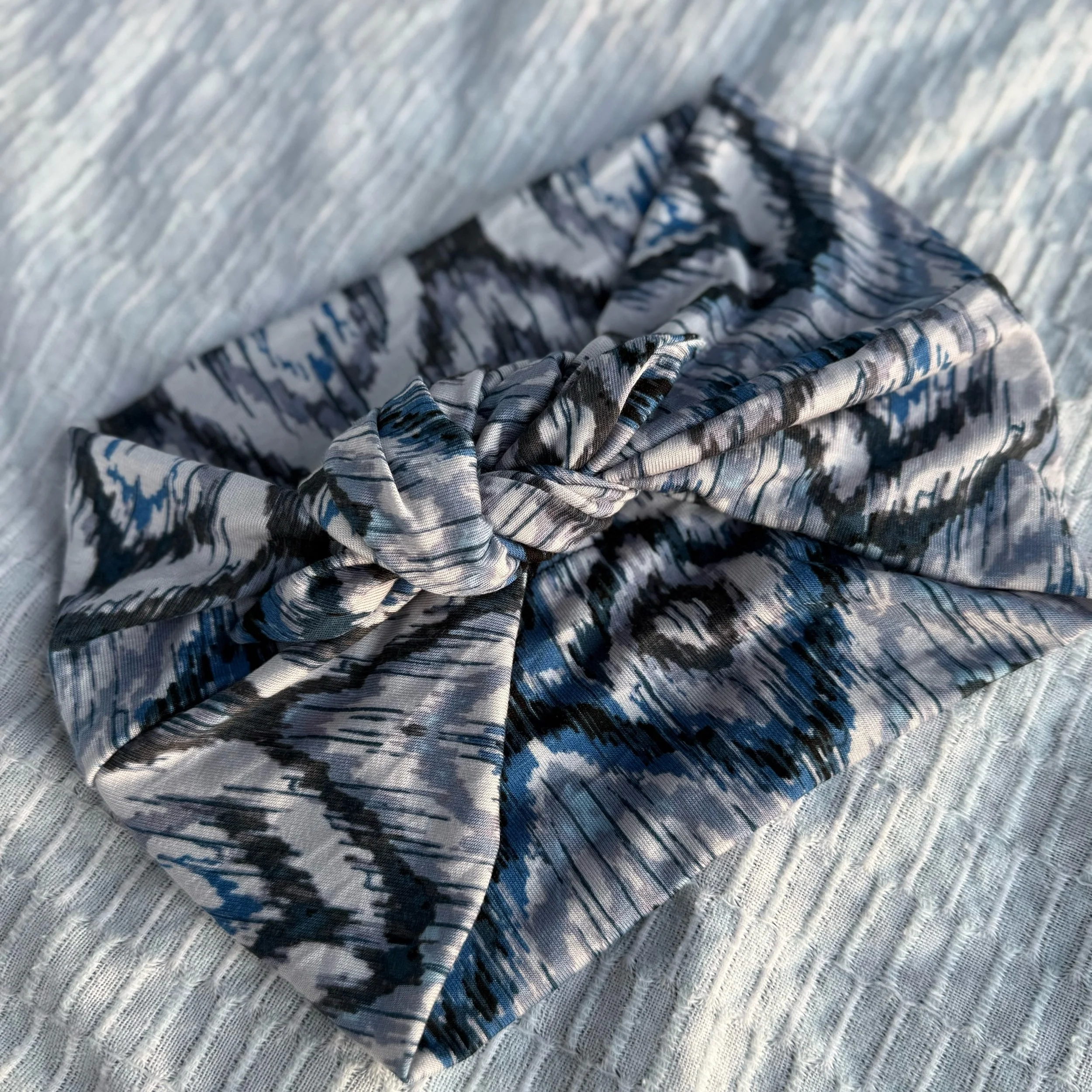 We hand cut and sew these headbands one at a time. I often use vintage and reclaimed knit fabrics. This truly makes them one of a kind. Once the fabric is gone, I cannot get it again. We are not mass producing them out of standard fabric. That means you get a truly unique look!