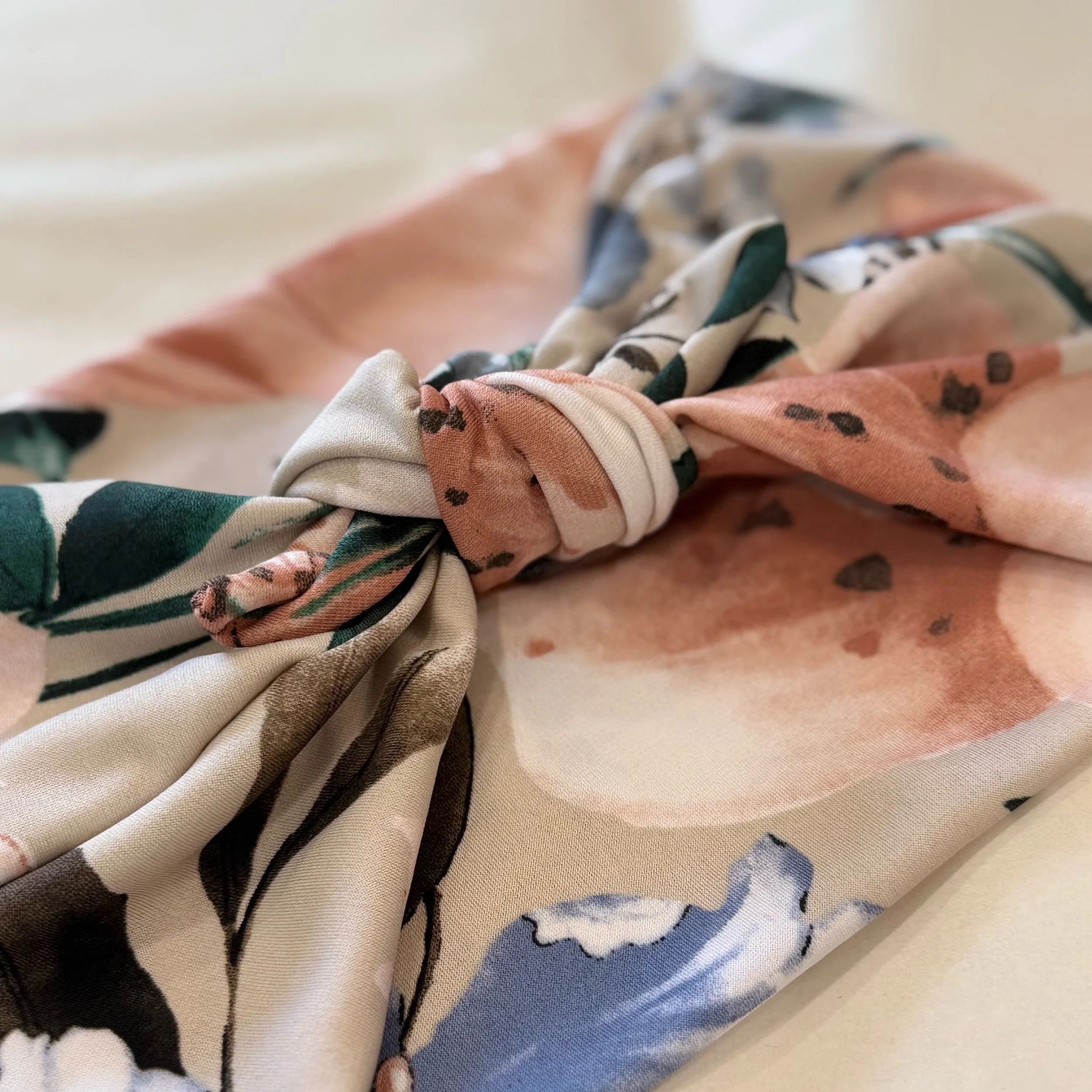 We hand cut and sew these headbands one at a time. I often use vintage and reclaimed knit fabrics. This truly makes them one of a kind. Once the fabric is gone, I cannot get it again. We are not mass producing them out of standard fabric. That means you get a truly unique look!