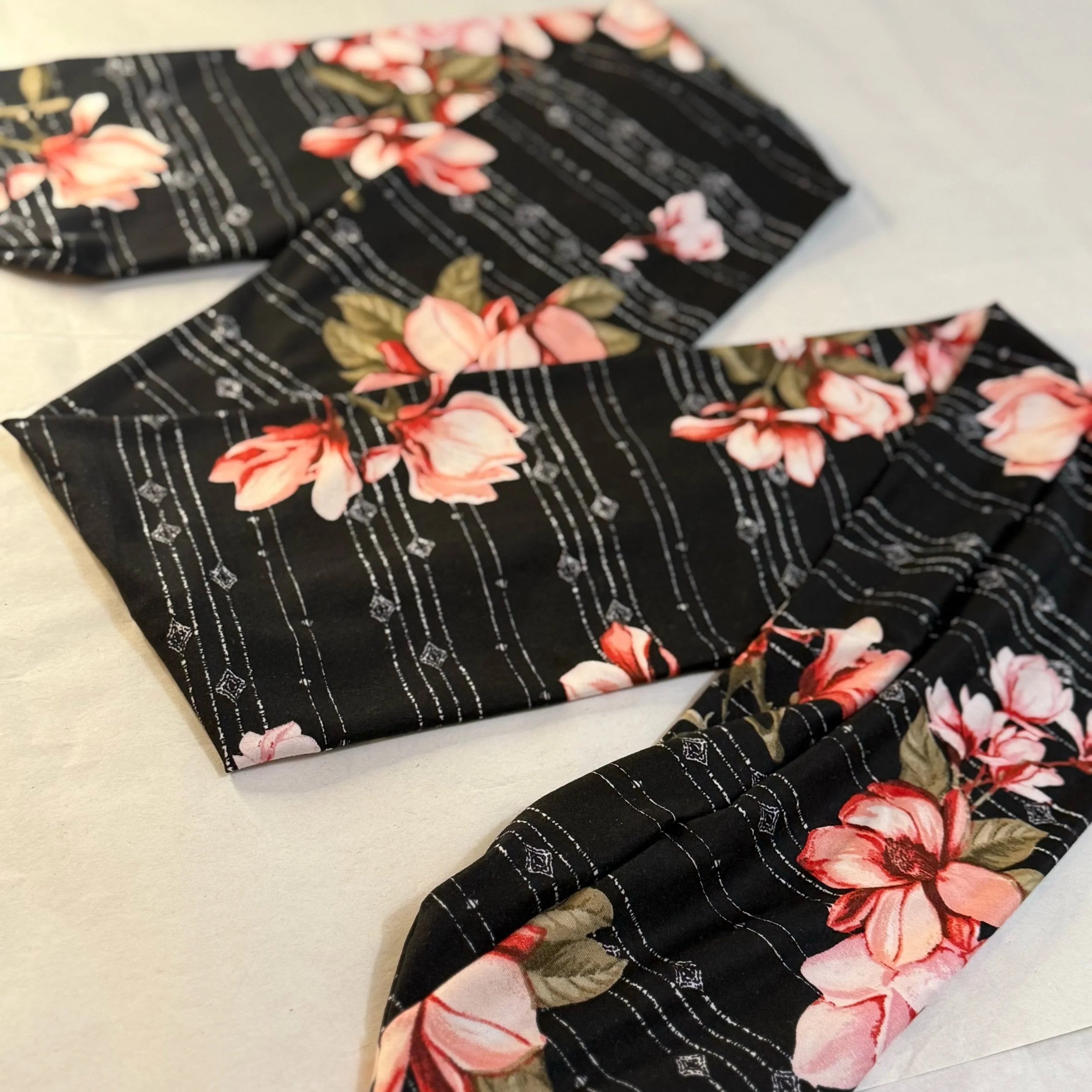 We hand cut and sew these headbands one at a time. I often use vintage and reclaimed knit fabrics. This truly makes them one of a kind. Once the fabric is gone, I cannot get it again. We are not mass producing them out of standard fabric. That means you get a truly unique look!