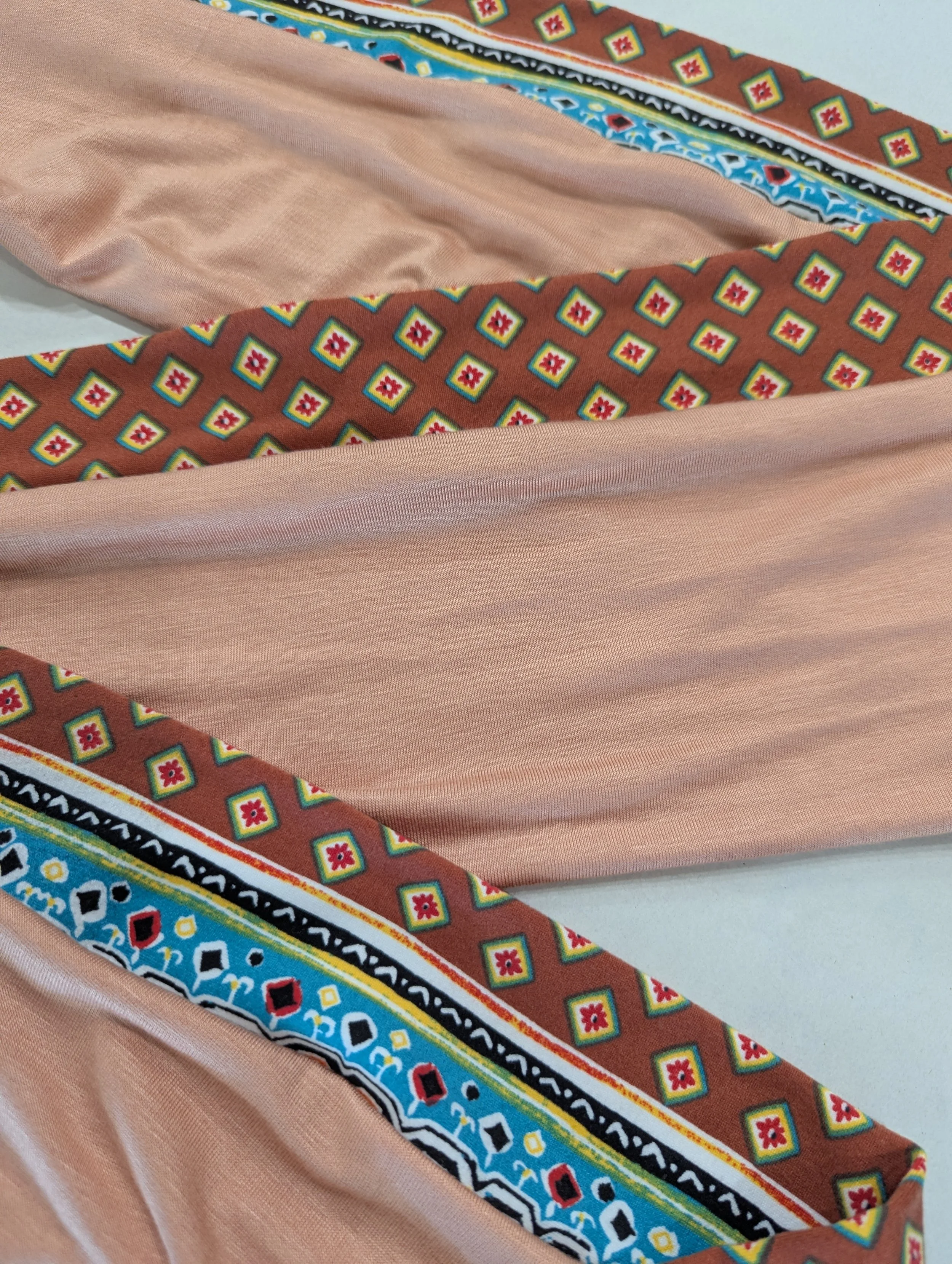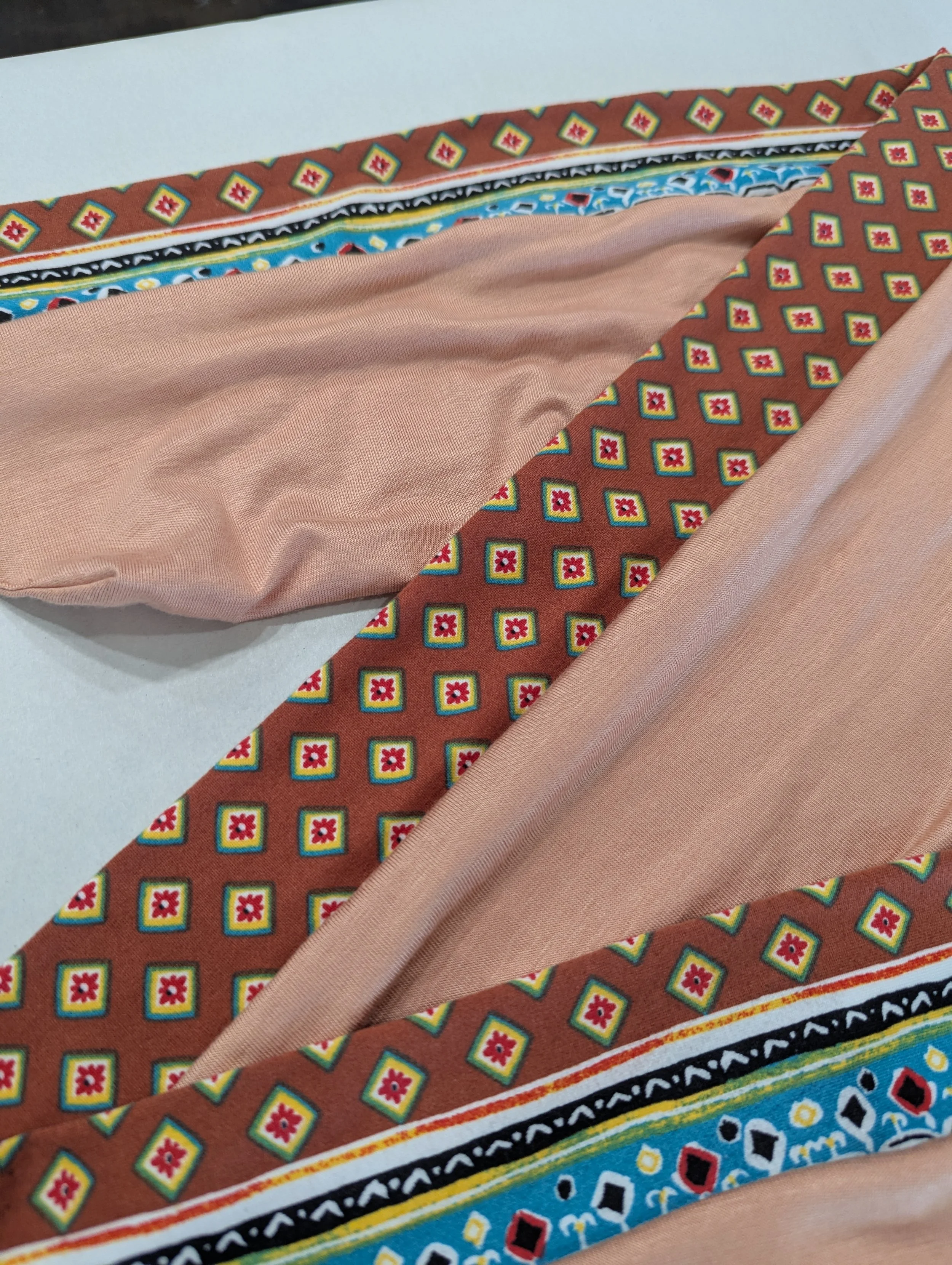 We hand cut and sew these headbands one at a time. I often use vintage and reclaimed knit fabrics. This truly makes them one of a kind. Once the fabric is gone, I cannot get it again. We are not mass producing them out of standard fabric. That means you get a truly unique look!