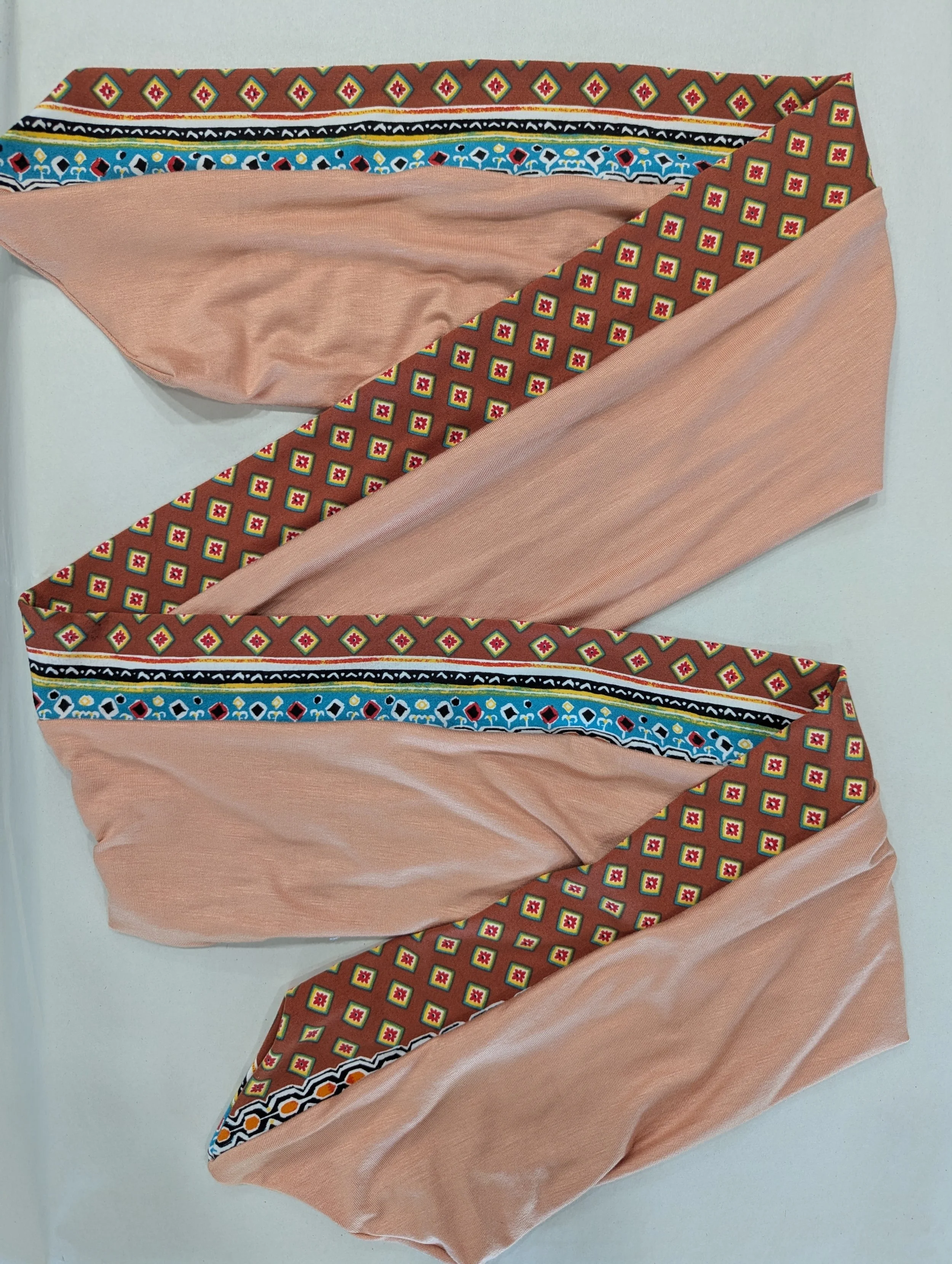 A one of a kind two tone headband, it is made with two different fabrics sewn together. This one came out a little extra wide!