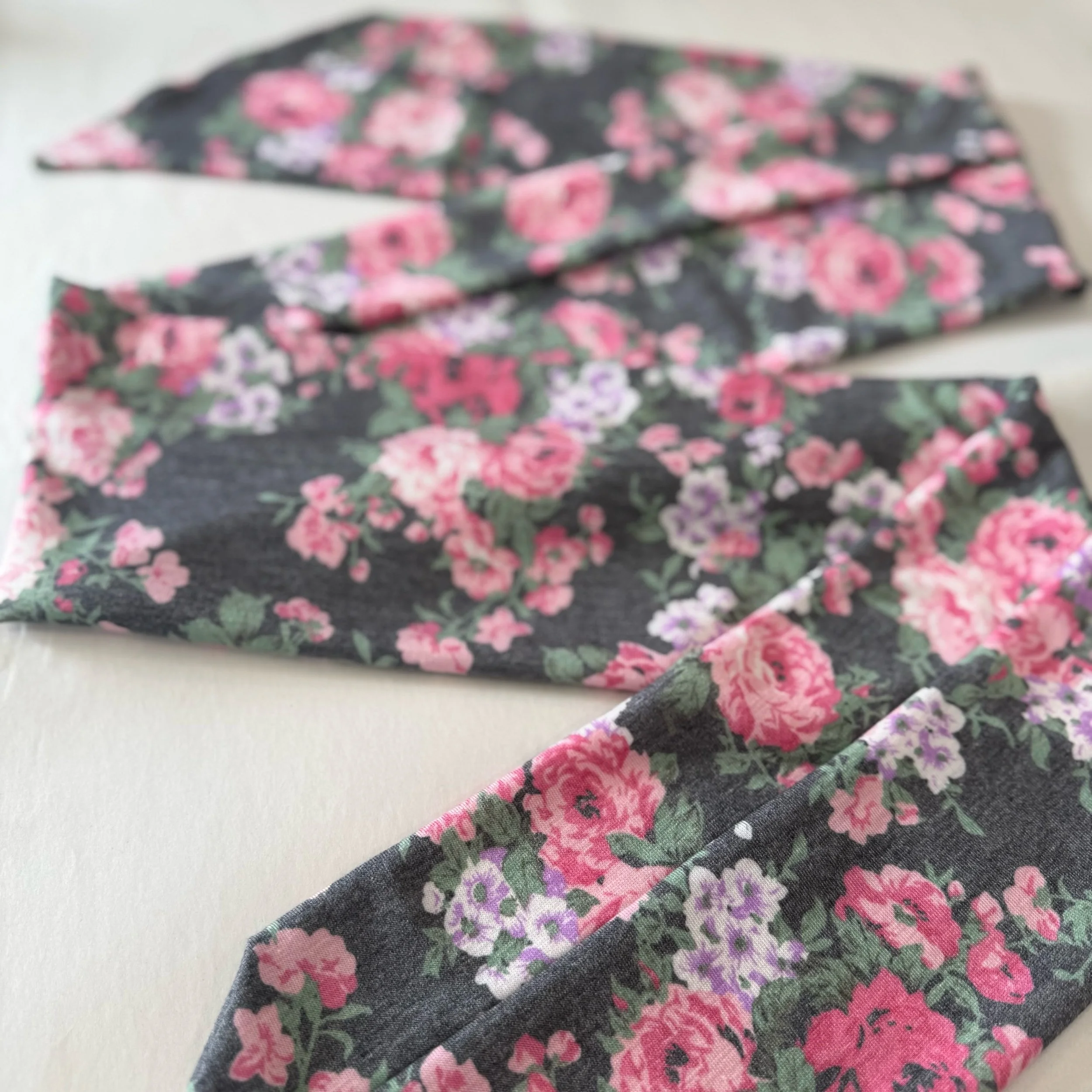 We hand cut and sew these headbands one at a time. I often use vintage and reclaimed knit fabrics. This truly makes them one of a kind. Once the fabric is gone, I cannot get it again. We are not mass producing them out of standard fabric. That means you get a truly unique look!